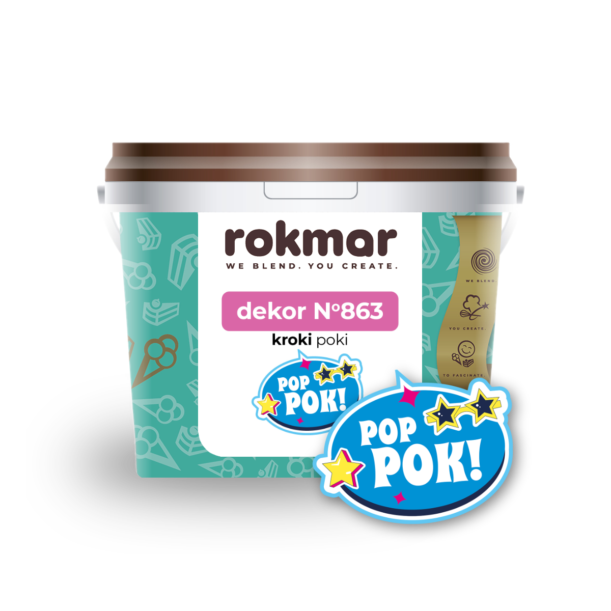 Otroški hit. Pokepoks z noto vanilije in kakava + modri pokajoči preliv. Vizualno zelo privlačen, okusen, barvit. Prodaja se sama – otroci vidijo, otroci hočejo.